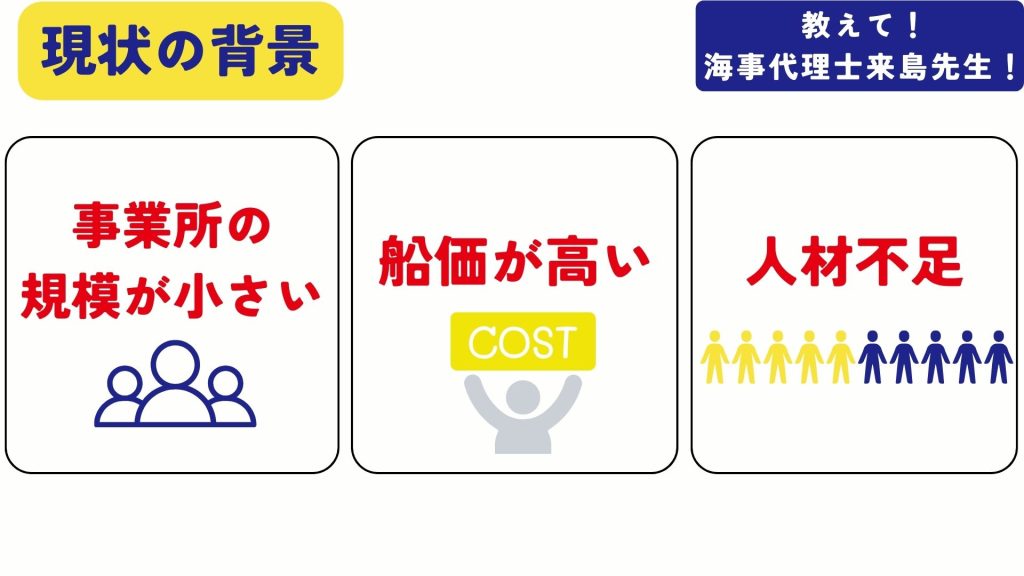 二つ目は、鋼材・資材の高騰を背景に船価が高く、中国・韓国造船業との厳しい競争に勝てないということ。