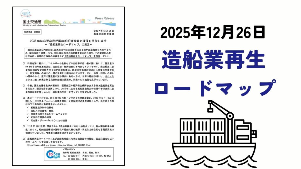 それに基づき作成され、昨年12月26日に公表されたのが「造船業再生ロードマップ」です。